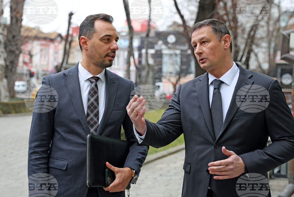 Варна (16 февруари 2024) Министърът на икономиката и индустрията Богдан Богданов (ляво) е на работно посещение във Варна. В Зала 1 на Икономически университет - Варна, министърът се среща с академичното ръководство, преподаватели и студенти на Университета. Акцент в срещата ще бъдат възможностите за практическо обучение на студенти и млади специалисти и тяхното кариерно развитие у нас. На срещата присъства ректорът на университета проф. д-р Евгени Станимиров (дясно).