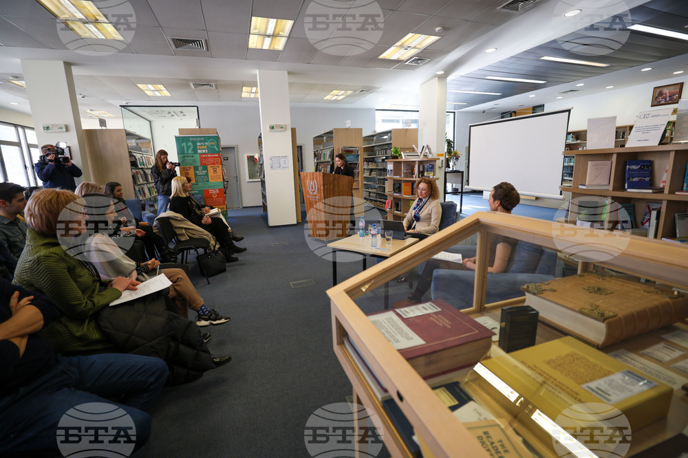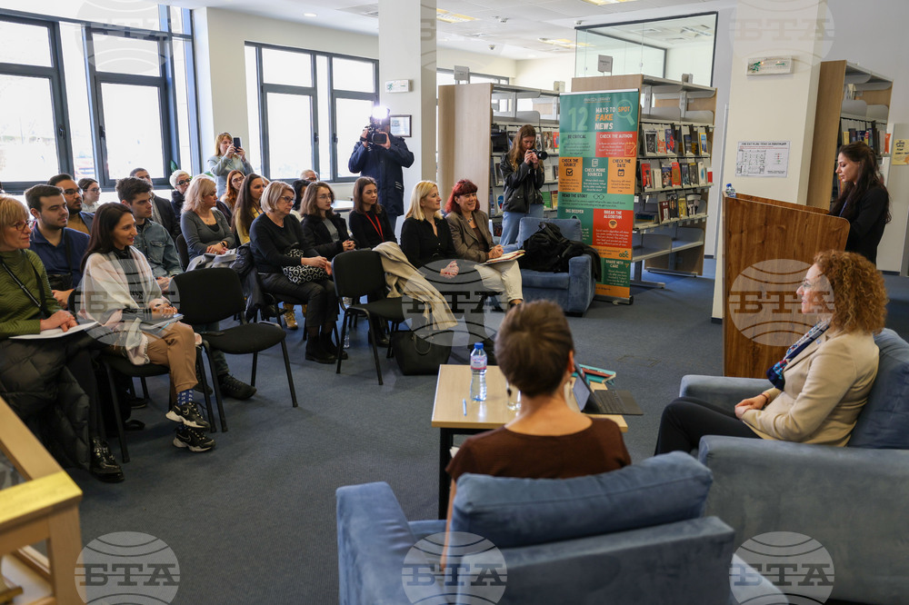 Благоевград (16 февруари 2024) Министърът на труда и социалната политика д-р Иванка Шалапатова (на снимката) провежда среща със студенти и преподаватели от Американския университет в България. Тя участва в дискусия на тема „Отживелица ли е социалната държава“ в Библиотека „Паница“ в Студентския център „Америка за България“ на кампуса на АУБ в Благоевград.