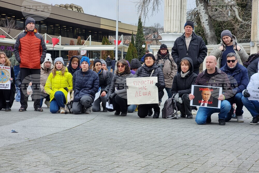 Варна (17 февруари 2024) Над сто души се събраха на входа на Морската градина във Варна да почетат паметта на руския опозиционен лидер Алексей Навални. Те поднесоха цветя, запалиха свещи, коленичиха и запазиха минута мълчание пред импровизиран кът със снимки на Навални.