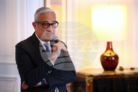 София (19 февруари 2024) Пресконференция по повод проучване на бизнес средата в България, съвместно разработено с агенцията за маркетингови проучвания "Ипсос", което е част от проекта "Бяла книга за България" на Френско-българската търговска и индустриална камара и Съветниците по външна търговия към посолството на Франция, се провежда в Посолството на Франция в България. На снимката: Антоан Тусан.
