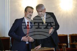 София (20 февруари 2024) Комисията по здравеопазването в Народното събрание организира кръгла маса на тема: „Хроничното бъбречно заболяване – неподозирано предизвикателство пред здравната система на Република България“. На снимката (от ляво надясно): заместник председателят на комисията Лъчезар Иванов и зам.председател на БЛС Николай Брънзалов.