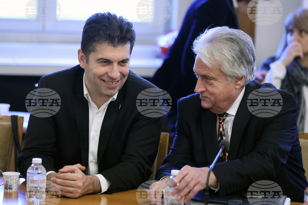 София (22 февруари 2024) В Народното събрание се провежда заседание на Временната комисия за проверка на факти и обстоятелства, свързани с дейността на групата около Мартин Божанов. На снимката (от ляво надясно): съпредседателят на „Продължаваме Промяната“ Кирил Петков, народният представител от ПП-ДБ Бойко Рашков.