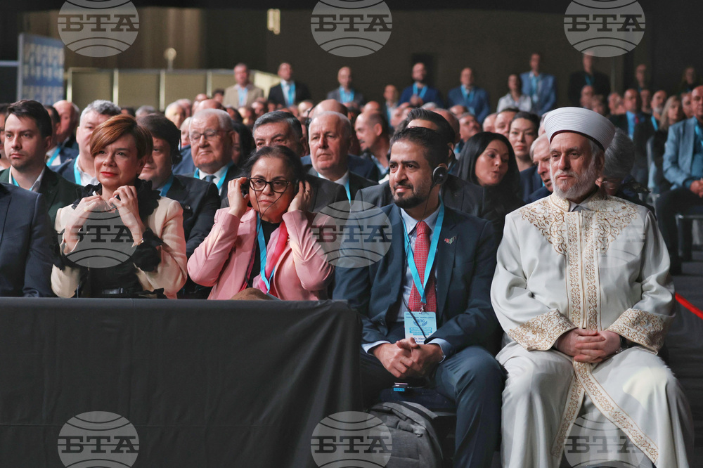 София (24 февруари 2024) В Интер Експо Център се провежда XI-та Национална конференция на Движението за права и свободи (ДПС). Сред присъстващите на събитието са посланикът на Република Турция в България госпожа Айлин Секизкьок (вляво), главният мюфтия Мустафа Хаджи (вдясно), посланици.