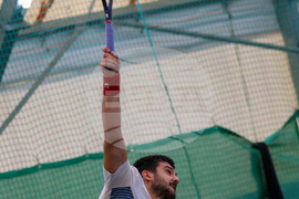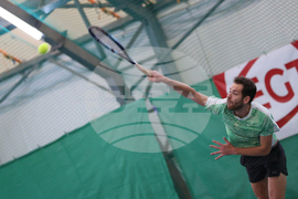 Благоевград (25 февруари 2024) В залата за тенис на Югозападен университет "Неофит Рилски" в Благоевград се играят финалите от Държавното лично първенство по тенис на закрито (мъже и жени). На снимката: Пламен Милушев.