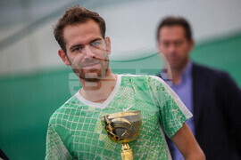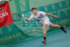 Благоевград (25 февруари 2024) В залата за тенис на Югозападен университет "Неофит Рилски" в Благоевград се играят финалите от Държавното лично първенство по тенис на закрито (мъже и жени). На снимката: победителят при мъжете Пламен Милушев.