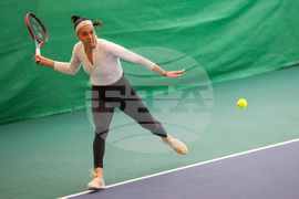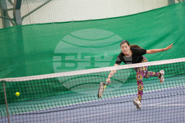 Благоевград (25 февруари 2024) В залата за тенис на Югозападен университет "Неофит Рилски" в Благоевград се играят финалите от Държавното лично първенство по тенис на закрито (мъже и жени). На снимката: Джулия Терзийска.
