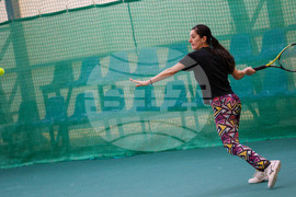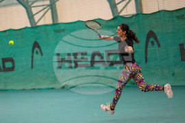 Благоевград (25 февруари 2024) В залата за тенис на Югозападен университет "Неофит Рилски" в Благоевград се играят финалите от Държавното лично първенство по тенис на закрито (мъже и жени). На снимката: Хюлия Велиева.