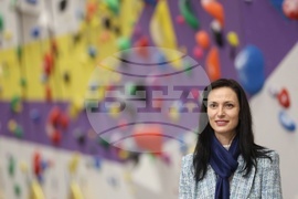 София (28 февруари 2024) В столицата се открива официално многофункционална спортна зала за катерене и тренировъчен център „Балкан“. На снимката: вицепремиерът и министър на външните работи Мария Габриел.