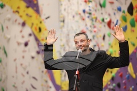 София (28 февруари 2024) В столицата се открива официално многофункционална спортна зала за катерене и тренировъчен център „Балкан“. На снимката: треньорът по спортно катерене Георги Пенев.
