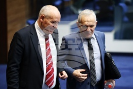 София (29 февруари 2024) Парламентът провежда редовно заседание в сградата на Народното събрание. На снимката (от ляво надясно): народните представители от БСП Иван Ченчев и Георги Свиленски.