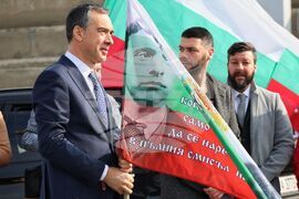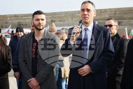 Бургас (3 март 2024) По повод националния празник - 3 март се провежда "Българовско шествие". Авто-мото походът стартира от Морска гара, преминава през основни улици на Бургас и завършва тържествено в град Българово. На снимката (от ляво надясно): организаторът на шествието Пламен Карашев и кметът на Община Бургас Димитър Николов.