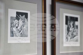 Бургас (6 март 2023) Художникът Христо Керин (вдясно) гостува на бургаската галерия „Неси“ с изложбата „Малък формат“. Авторът показва 42 графични произведения.
