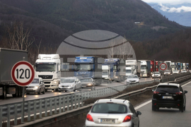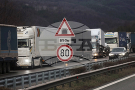Витиня (7 март 2024) Трафик от автомобили и камиони на автомагистрала „Хемус“ в района на проход Витиня.