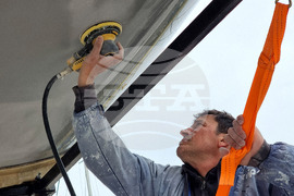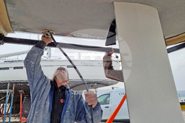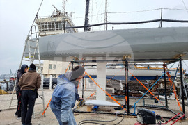 Варна (11 март 2024) Яхтсмени подготвят плавателен съд за предстоящия активен ветроходен сезон.