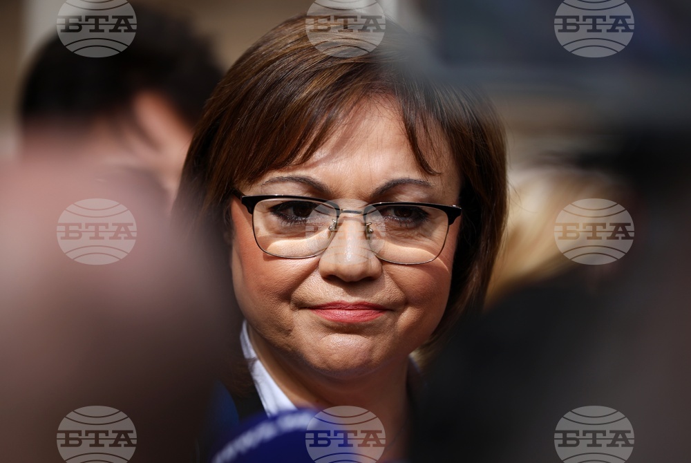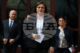 София (12 март 2024) Президентът провежда консултации с парламентарните сили в 49-ото Народно събрание за съставяне на правителство. Държавният глава приема представители на парламентарната група на „БСП за България“. След края на срещата се провежда брифинг. На снимката: председателят на БСП Корнелия Нинова.