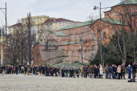 София (15 март 2024) По решение на Светия синод днес тленните останки на Светейшия патриарх са изложени за поклонение в патриаршеската катедрала „Св. Александър Невски“. Пред храма се е образувала опашка от чакащи граждани и гости на столицата.
