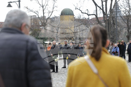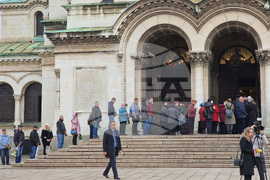 София (15 март 2024) По решение на Светия синод днес тленните останки на Светейшия патриарх са изложени за поклонение в патриаршеската катедрала „Св. Александър Невски“. Пред храма се е образувала опашка от чакащи граждани и гости на столицата. Министърът на правосъдието в оставка Атанас Славов (вляво) и Тодор Батков.