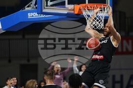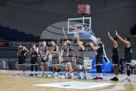 Бургас (17 март 2024) В спортна зала "Арена Бургас" се провежда баскетболна среща между отбора на Черноморец и отбора на Спартак Плевен (на снимката). Мачът е финал от турнира за efbet Купата на България по баскетбол за мъже.