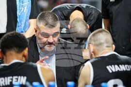 Бургас (17 март 2024) В спортна зала "Арена Бургас" се провежда баскетболна среща между отбора на Черноморец и отбора на Спартак Плевен. Мачът е финал от турнира за efbet Купата на България по баскетбол за мъже. На снимката: старши треньорът на Черноморец Васил Евтимов.