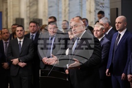 София (20 март 2024) В Народното събрание се провежда брифинг на представители на ГЕРБ. На снимката: председателят на ГЕРБ Бойко Борисов (на трибуната).