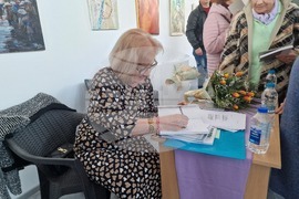 Сандански (20 март 2024) Литературна вечер, част от поредица културни вечери, събра в Сандански жители и гости на града. Тази вечер в Дома на културата се представи първата стихосбирката „Звездица“ на Марина Бартолумеос (на снимката), която подари книги на всички присъстващи. Мероприятията ще се провеждат до 31 март и са инициирани от Клуба за литература, изкуство и култура – КЛИК в Сандански.