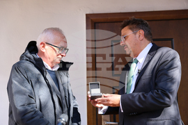 Кюстендил (21 март 2024) В град Кюстендил се открива новият Национален пресклуб на Българската телеграфна агенция (БТА). Генералният директор на БТА Кирил Вълчев (дясно) връчва на областния управител на Кюстендил Александър Пандурски медала, издаден от Монетния двор на Българската народна банка (БНБ), по повод 125-та годишнина от първите новини на БТА.