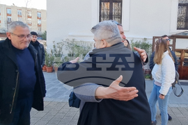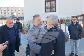 Сливен (23 март 2024) Отец Иван Янков от храма "Света Троица" обяви, че прекратява гладната си стачка срещу касирания избор на Сливенски митрополит на Благовещение. Той направи изявлението си пред журналисти, докато отиваше към катедралния храм "Свети Димитър" да вземе причастие и в момент, в който отец Силвестър Янакиев (на снимката) бе интервюиран, представяйки своята позиция относно касирането на изборите. Двамата се прегърнаха публично, въпреки различните си позиции.