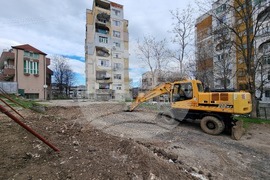 Кърджали (25 март 2024) Жители на кърджалийкия квартал "Възрожденци" се срещнаха с кмета на града, за да поискат да се спре строежът на нова кооперация на метри от домовете им и за сметка на зелени площи и паркоместа. На снимката: започналите изкопни дейности.