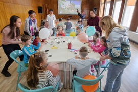 Габрово (1 април 2024) Детско ателие „Първоаприлска шега“ в Зала на жирафите тече в момента по повод 1 април - Рождения ден на Музея на хумора и сатирата в Габрово. Заедно с доброволци и музейните специалисти, деца от цяла България изработват атрактивна котка, която могат да отнесат със себе си за спомен от деня на шегата.