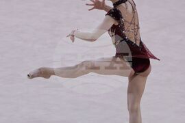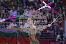 София (14 април 2024) В зала "Арена София" се провеждат финали на Световната купа по художествена гимнастика. На снимката: Боряна Калейн съчетание с лента.
