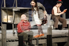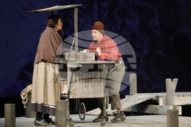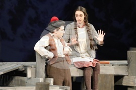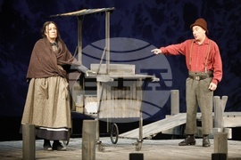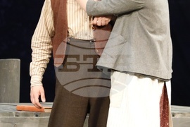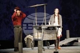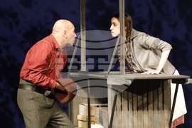 Русе (17 април 2024) Русенският драматичен театър "Сава Огнянов" представя на публиката новия си спектакъл "Куцльото от забутания остров" от Мартин Макдона. Режисьор на постановката е Пламен Марков. Премиерата на спектакъла е на 21 април, на Голяма сцена на Доходното здание в Русе. На снимката: актьорите Тодор Лазаров и Ивана Керанова.