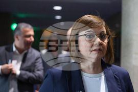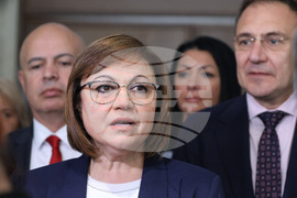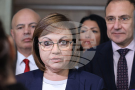 София (18 април 2024) Парламентарната група на БСП дава брифинг в кулоарите на Народното събрание. На снимката: председателят на БСП Корнелия Нинова.