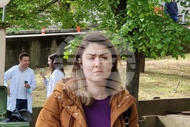 Скопие (18 април 2024) Протест в Клиничния център на лекари - специализанти в Северна Македония, които настояват за увеличаване на месечното им възнаграждение до нивото на средната заплата на лекар в обществено здравно заведение. На снимката: председателят на Сдружение на лекари - специализанти Александра Георгиева.