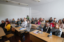 Благоевград (18 април 2024) Лингвистът и полиглот д-р Антъни Хойт-Уест (на снимката) изнася публична лекция в Югозападен университет „Неофит Рилски“. Той е с изявен интерес към българистиката. Д-р Хойт-Уест е на двумесечна специализация във Филологическия факултет на ЮЗУ „Неофит Рилски“ в рамките на ННП „Развитие и утвърждаване на българистиката в чужбина“.