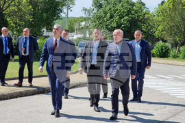Козлодуй (20 април 2024) Служебният министър-председател Димитър Главчев (вдясно на преден план) и служебният министър на енергетиката Владимир Малинов (вляво на преден план) са на посещение в Атомната електроцентрала „Козлодуй“, където днес пристигна първата доставка на ядрено гориво от компанията „Уестингхаус“.