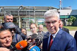 Козлодуй (20 април 2024) Служебният министър-председател Димитър Главчев и служебният министър на енергетиката Владимир Малинов са на посещение в Атомната електроцентрала „Козлодуй“, където днес пристигна първата доставка на ядрено гориво от компанията „Уестингхаус“. На снимката: изпълнителният директор на АЕЦ „Козлодуй“ Валентин Николов.