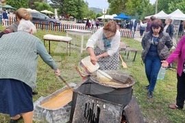 Село Царевец (27 април 2024) За трета поредна година мездренското село Царевец е домакин на „Фестивал на сапуна“. Традиционният за селото занаят е вписан в листата за нематериално културно наследство на ЮНЕСКО. На снимката: 84-годишната Венета Коцева, с чиято помощ е възстановен занаятът за правене на домашен сапун.
