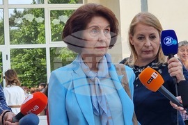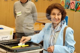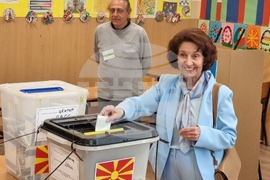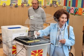 Скопие (8 май 2024) В Република Северна Македония се провеждат парламентарни избори и втори кръг на президентските избори. На изборите две в едно в страната, 1 814 317 граждани имат възможност да избират президент от достигналите до втория тур Гордана Силяновска, издигната от ВМРО-ДПМНЕ, и Стево Пендаровски, който се бори за втори президентски мандат. На снимката: кандидатът за президент Гордана Силяновска-Давкова гласува в ОУ "Коле Неделковски" в община "Център" в Скопие.