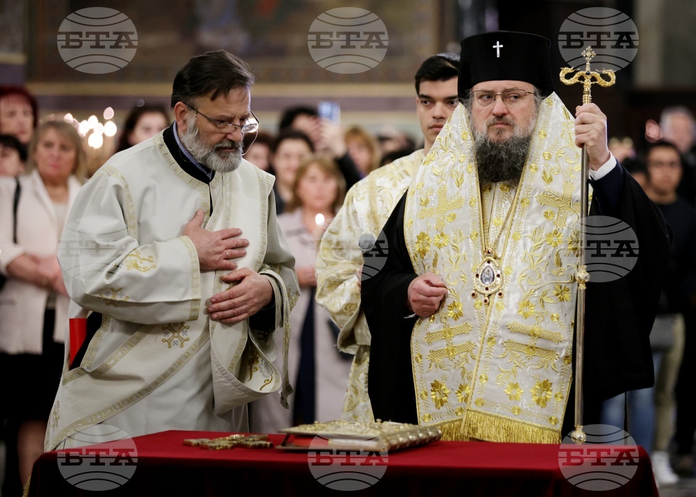 София (13 май 2024) Във връзка с Международния ден на сестринството се отслужва молебен за православния здравен служител в храм-паметник „Св. Александър Невски". На снимката: наместник-председателя на Светия Синод на Българската православна църква Негово Високопреосвещенство Врачанския митрополит Григорий (дясно).