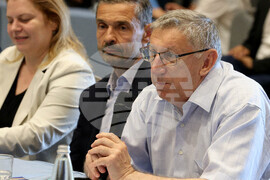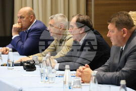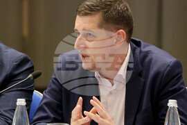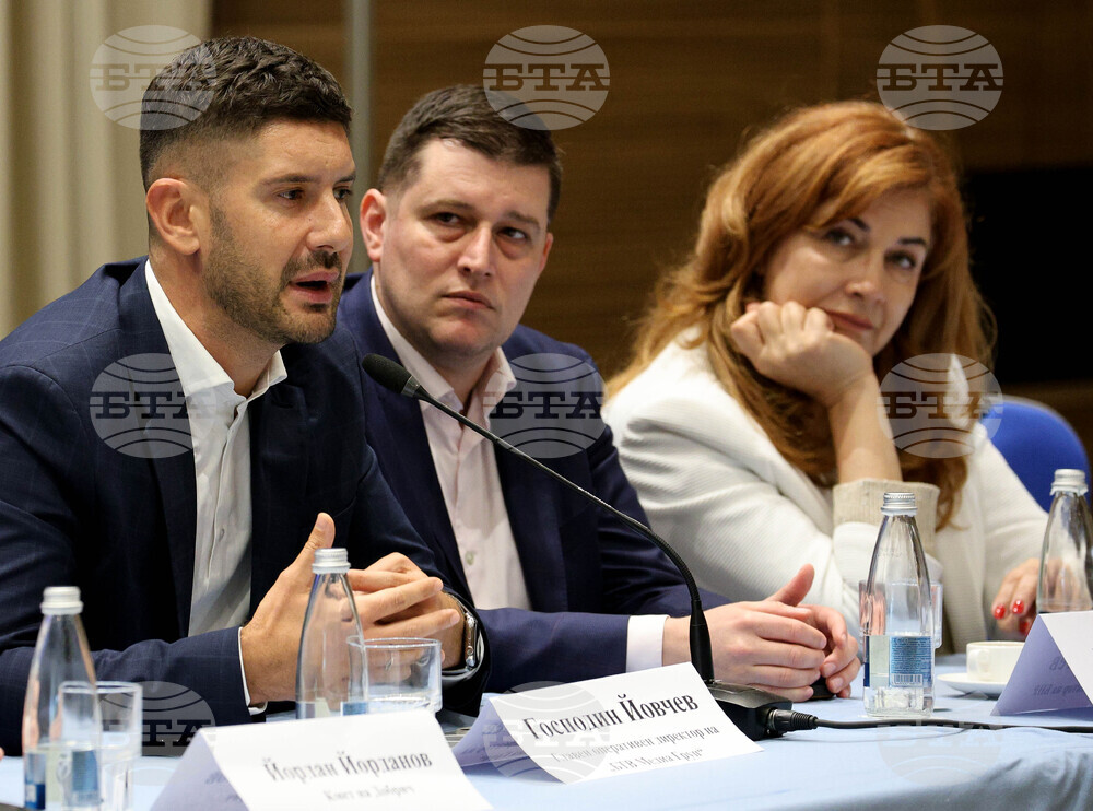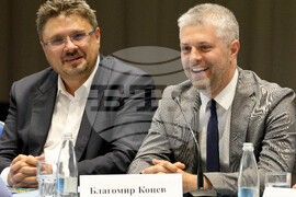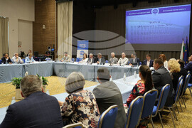 Албена (31 май 2024) Българската телеграфна агенция организира форум "БГ ТУРИЗЪМ - ЛЯТО 2024" в хотел Maritim Hotel Paradise Blue в к.к. Албена. Това е петото издание от инициативата на БТА за организиране на форуми, които се провеждат два пъти всяка годината, за обсъждане на посланията при представянето на туризма в България през предстоящия сезон с представители на държавни и общински институции, туристическия бизнес, неправителствени организации, учени и експерти. На снимката (от ляво надясно): ректорът на Икономически университет Варна проф. Евгени Станимиров, председателят на комисията по туризъм Ертен Анисова, служебният министър на туризма Евтим Милошев, генералният директор на БТА Кирил Вълчев, кметът на град Варна Благомир Коцев, кметът на град Добрич Йордан Йорданов, главният оперативен директор на bTV Media GroupГосподин Йовчев, генералният директор на БНР Милен Митев.