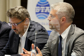 Албена (31 май 2024) Българската телеграфна агенция организира форум "БГ ТУРИЗЪМ - ЛЯТО 2024" в хотел Maritim Hotel Paradise Blue в к.к. Албена. Това е петото издание от инициативата на БТА за организиране на форуми, които се провеждат два пъти всяка годината, за обсъждане на посланията при представянето на туризма в България през предстоящия сезон с представители на държавни и общински институции, туристическия бизнес, неправителствени организации, учени и експерти. На снимката (от ляво надясно): главният оперативен директор на bTV Media Group Господин Йовчев, генералният директор на БНР Милен Митев, членът на УС на БНТ Василена Матакиева.