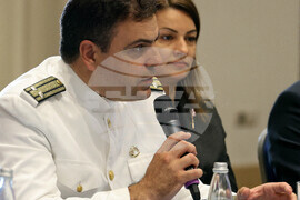 Албена (31 май 2024) Българската телеграфна агенция организира форум "БГ ТУРИЗЪМ - ЛЯТО 2024" в хотел Maritim Hotel Paradise Blue в к.к. Албена. Това е петото издание от инициативата на БТА за организиране на форуми, които се провеждат два пъти всяка годината, за обсъждане на посланията при представянето на туризма в България през предстоящия сезон с представители на държавни и общински институции, туристическия бизнес, неправителствени организации, учени и експерти. На снимката: командирът на научноизследователски кораб (НИК 421) „Св. св. Кирил и Методий“ капитан II ранг Николай Данаилов.