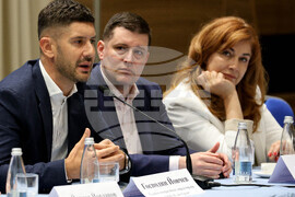 Албена (31 май 2024) Българската телеграфна агенция организира форум "БГ ТУРИЗЪМ - ЛЯТО 2024" в хотел Maritim Hotel Paradise Blue в к.к. Албена. Това е петото издание от инициативата на БТА за организиране на форуми, които се провеждат два пъти всяка годината, за обсъждане на посланията при представянето на туризма в България през предстоящия сезон с представители на държавни и общински институции, туристическия бизнес, неправителствени организации, учени и експерти. На снимката (от ляво надясно): председателят на комисията по туризъм Ертен Анисова, служебният министър на туризма Евтим Милошев, генералният директор на БТА Кирил Вълчев.