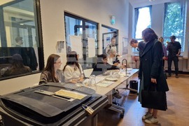 Хага (6 юни 2024) Нидерландия гласува днес на евроизборите, първа сред страните от Европейския съюз. Нидерландците ще изпратят 31 депутати в новия 720-местен Европейски парламент. За участие са регистрирани рекорден брой партии и кандидати: 20 партии от почти целия политически спектър и 497 кандидати. Гласуването по традиция започва в 7,30 сутринта, но секции на гарите отвориха по-рано, тъй като много хора минават оттам на път за работа или учене. След 21 часа, когато ще приключи гласуването, ще стана известни първите екзит-полове. На снимката: секция в Хага.