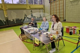 Утрехт (6 юни 2024) Нидерландия гласува днес на евроизборите, първа сред страните от Европейския съюз. Нидерландците ще изпратят 31 депутати в новия 720-местен Европейски парламент. За участие са регистрирани рекорден брой партии и кандидати: 20 партии от почти целия политически спектър и 497 кандидати. Гласуването по традиция започва в 7,30 сутринта, но секции на гарите отвориха по-рано, тъй като много хора минават оттам на път за работа или учене. След 21 часа, когато ще приключи гласуването, ще стана известни първите екзит-полове. На снимката: гласуване в спортната зала на кварталното училище "Принцеса Маргийт".
