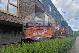 Утрехт (11 юни 2024) Три дни преди началото на Евро 2024 Нидерландия се обагря в оранжево. Улици и къщи са декорирани с нидерландското знаме и с флагчета в оранжево, националния цвят на страната. На снимката: улици в квартал Заюлен, Утрехт (Нидерландия).