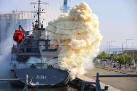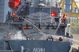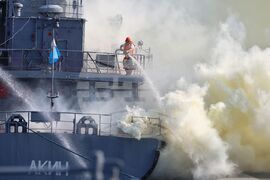 Бургас (12 юли 2024) На пристанище Бургас се провежда епизод: „Борба с пожар на търговски кораб в пристанище“ от Националното военноморско учение с международно участие „Бриз - 2024“. В имитацията на пожара и последващото му гасене умения показват Военноморските сили на Република България, служители на Агенция Морска администрация, Пожарна безопасност и защита на населението, Център за спешна медицинска помощ и други. Търговският кораб е „Orion“, а противопожарният „Ахелой“.