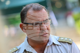 Благоевград (17 юли 2024) В пространството между Регионалния исторически музей и Младежкия дом в Благоевград над 300 деца научават чрез интерактивни игри за причините за възникване на горски пожар и превантивните мерки, за предпазване от пламване на огън в гората. Противопожарен автомобил на Регионална служба „Пожарна безопасност и защита на населението“ и високопроходима гасаческа техника, с която разполага „Югозападно държавно предприятие“ са на място и демонстрират работата на екипите. Игрите са част от кампанията на Министерство на земеделието и храните и Изпълнителна агенция по горите, за опазване на горите от пожари. На снимката: директорът на РДПБЗН - Благоевград комисар Валентин Василев.