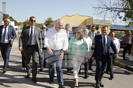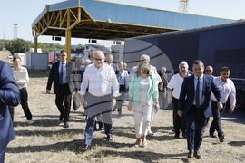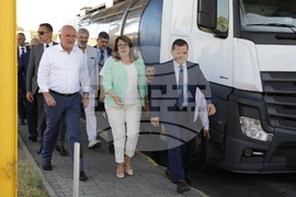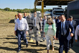 Русе (2 август 2024) Много добре върви ремонтирането на Дунав мост. Това каза пред журналисти служебният министър-председател Димитър Главчев. Премиерът и служебният министър на регионалното развитие и благоустройството Виолета Коритарова проверяват на място трафика на граничния контролно-пропускателен пункт (ГКПП) „Русе-Гюргево“. На снимката (от ляво надясно): служебният министър-председател Димитър Главчев, служебният министър на регионалното развитие и благоустройството Виолета Коритарова, областният управител на Русе Драгомир Драганов.