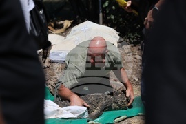 София (7 август 2024) Служители на Софийския зоопарк изземват крокодила, който вчера бе открит в квартал „Ботунец".